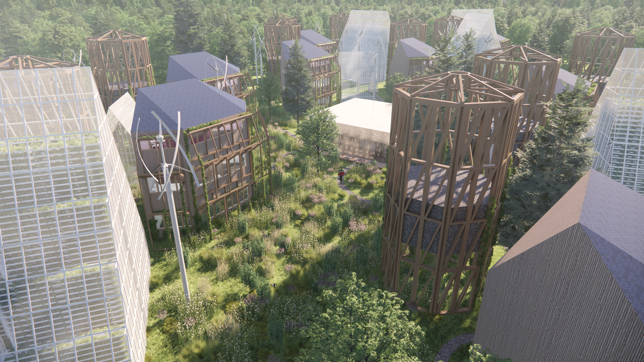 Projekt osady jest modelową koncepcją przedstawiającą alternatywę dla współczesnej, podmiejskiej architektury mieszkalnej. Osada składa się z piętnastu budynków jednorodzinnych, piętnastu drewnianych wież służących jako magazyny energii, dziewięciu szklarni do produkcji pełnowartościowej diety oraz czterech budynków wspólnych.