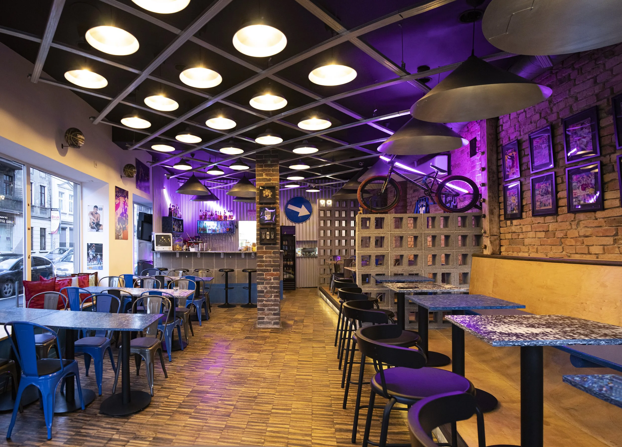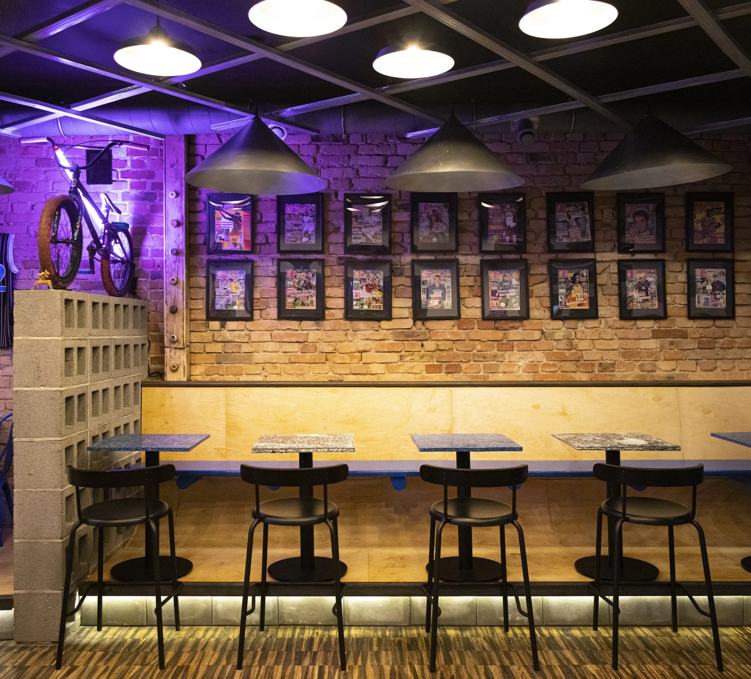 To lokal po Kombinacie (takie gastro, kiedyś fajne), którego wnętrze wyglądało jak filia chłopskiego jadła więc pierwszym zadaniem było - odkarczmienie. Stąd decyzja o wprowadzeniu kontrastu - surówy materiałowej w postaci betonu i blachy.